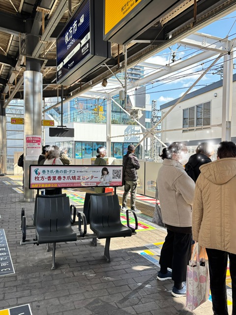 3月6日に京阪枚方市駅のホームのベンチに